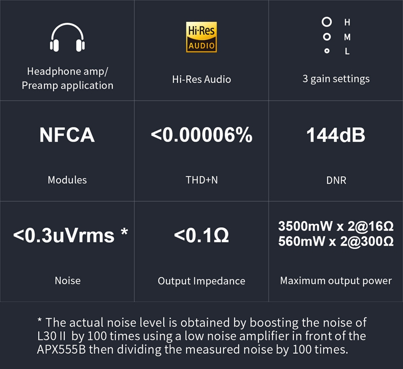 Topping has featured a newly developed redesigned NFCA(Nested Feedback Composite Amplifier) module on the L30 II. It provides powerful amplification to the audio signals easily driving most of your headphones and IEMs with ease. The amplifier achieves high-output power ratings with ultra-low noise floor and high dynamic range.