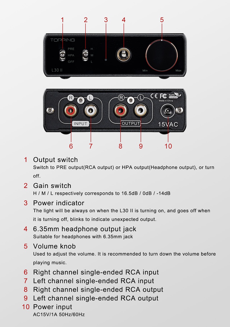Topping L30 II output has high output voltage, high current, and low output impedance. It is suitable for both low-power requiring IEMs and Headphones as well as high-power requiring demanding headphones and IEMs.