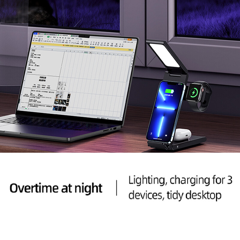 Name:15W 3in1 Folding Wireless Charging Stand With Table Lamp