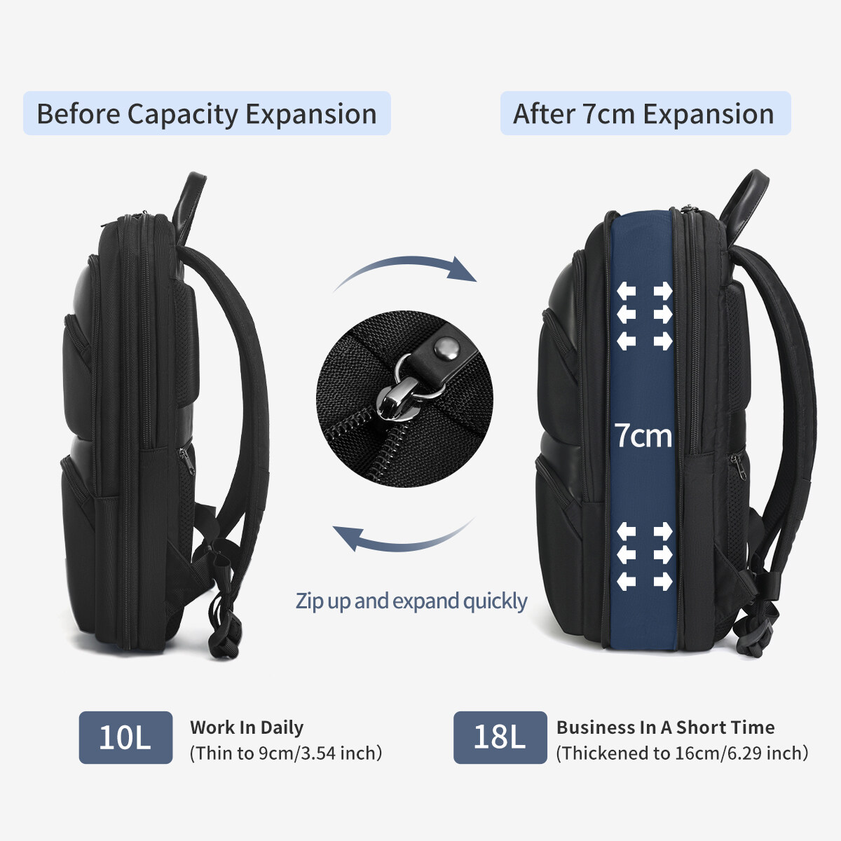 3. Large capacity design, can be expanded by 7cm;