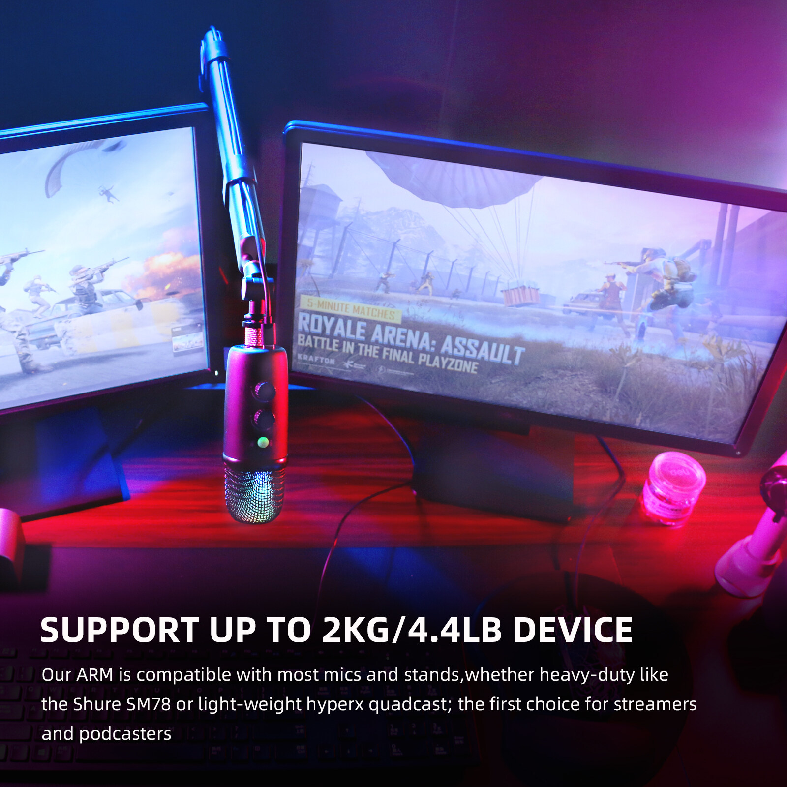 includes 3/8'' to 5/8'' adapter to connect most shock mounts and professional microphones such as Blue Yeti, Nano, Ice Snowball, Razer mini, RODE, Hyperx Quadcast and other microphones. The specially included 3/8'' to 1/4'' adapter allows you to connect cameras, smartphones and other devices (up to 2KG) to meet your diverse creative needs.