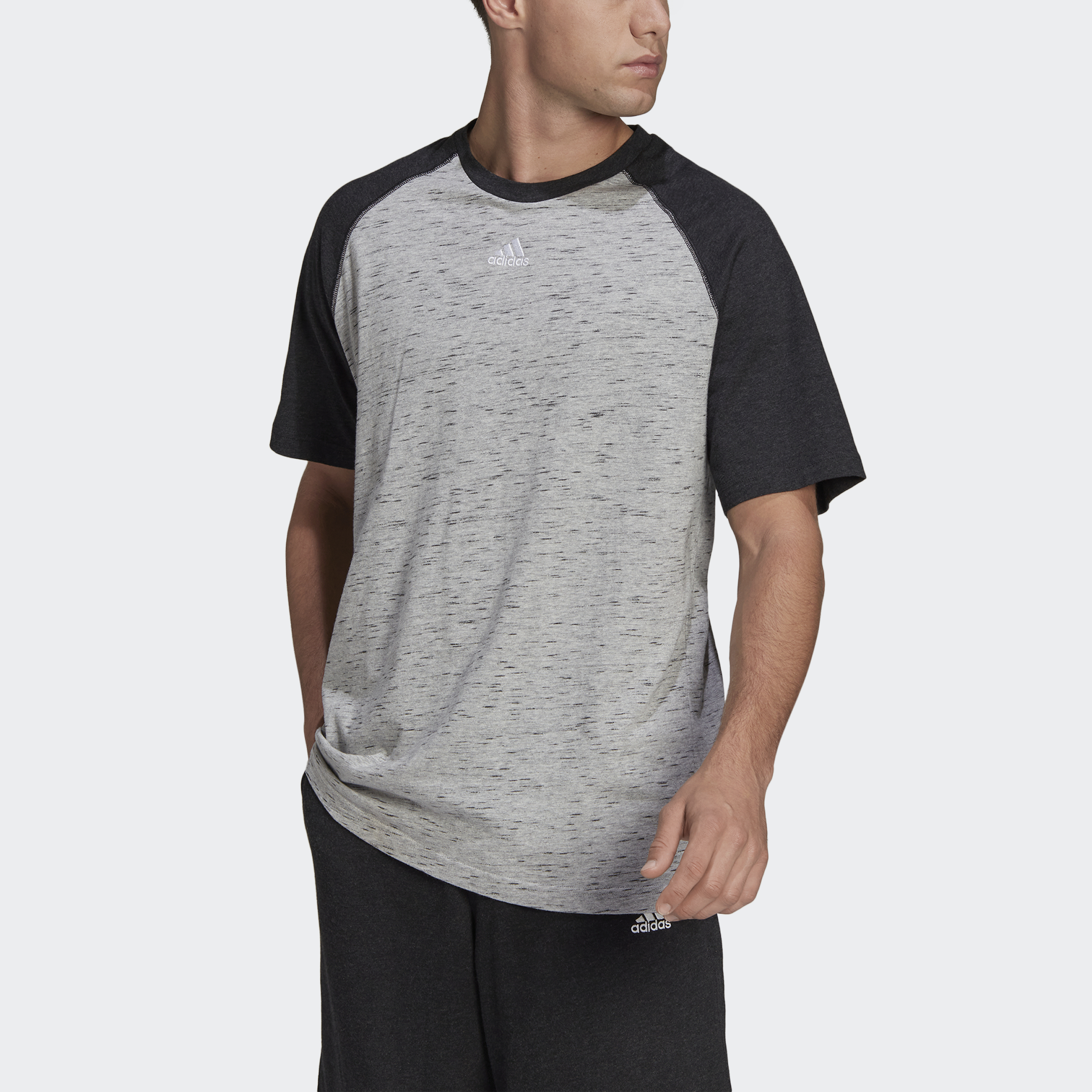 Comfort and style. This adidas t-shirt has plenty of both. This shirt is made of all-cotton single jersey that is super soft, and it has a crewneck and raglan sleeves for a look that's totally classic. It's cut to fit a bit loose, so you can roll through whatever's on your to-do list without distractions. A small adidas Badge of Sport on the upper chest signs off on the whole package.