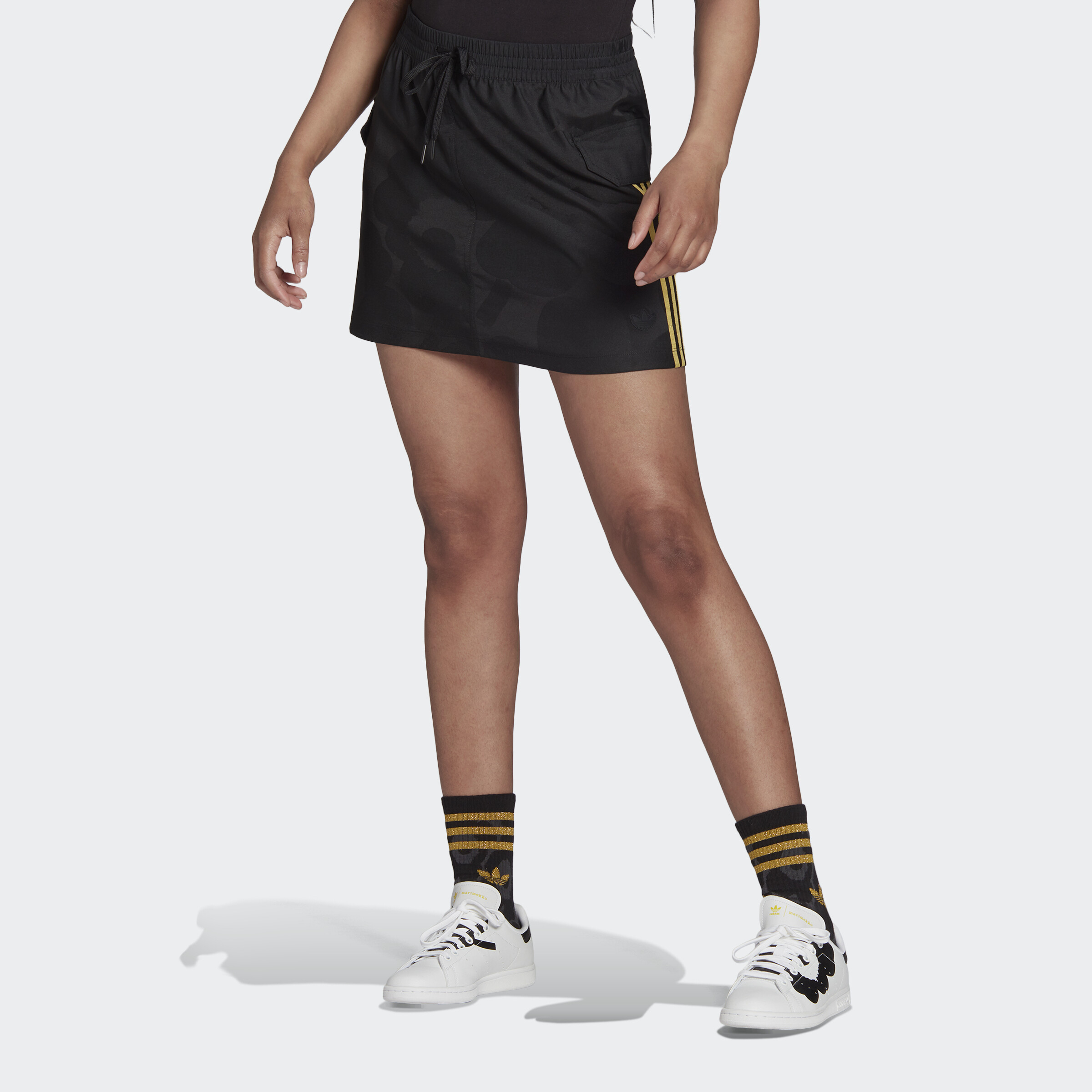 It's clear why we teamed up with Marimekko. A champion of self-expression, the Finnish label has been encouraging women to run, move and live 100% as themselves since Day One. This adidas x Marimekko skirt builds on that intention with their famous Unikko poppy print that represents creativity. For an added pop, the iconic 3-Stripes are made up in shiny metallic gold. This product is made with Primegreen, a series of high-performance recycled materials.
