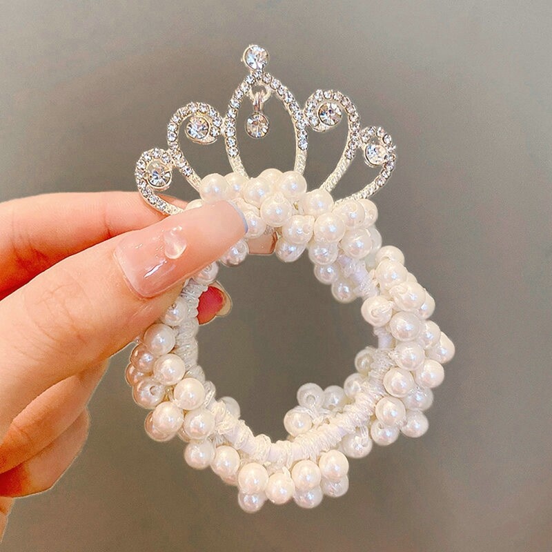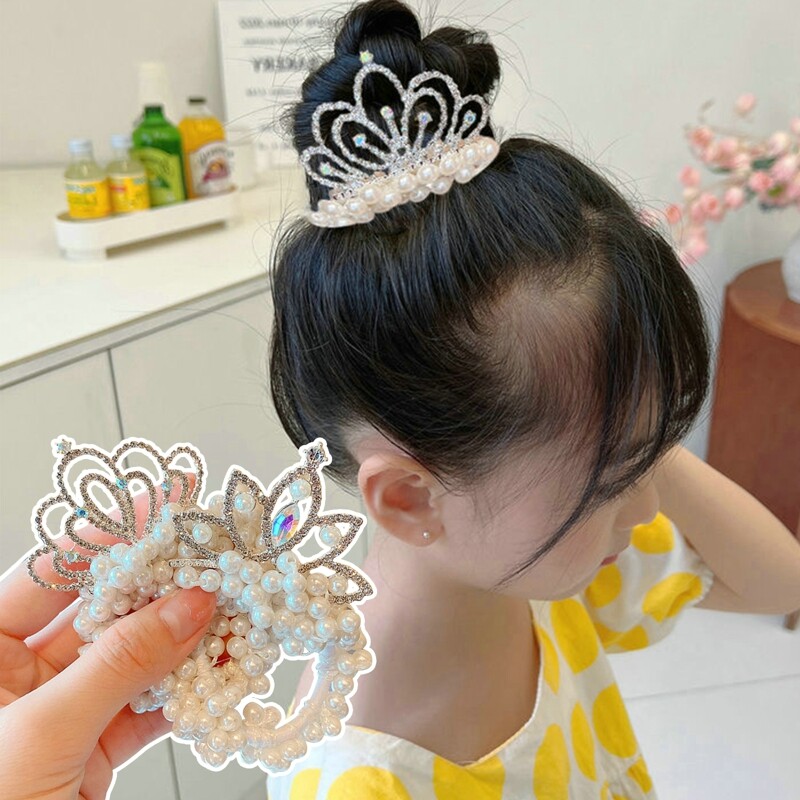 Features:Children's Crown Headdress Princess Headband South Korea New Pearl Flower Little Girl Tie Hair Ball Head Rubber Band