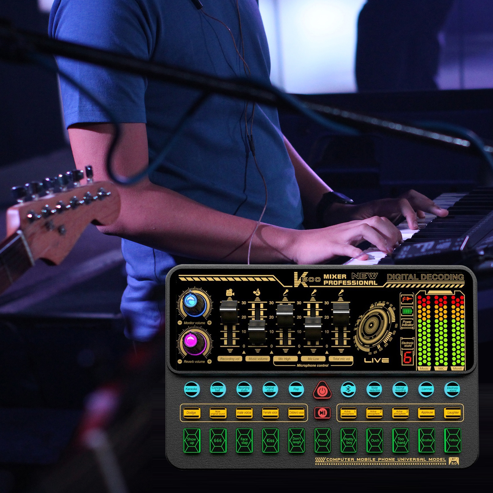 Multiple Sound Effects and Scene Modes: Built-in various interesting sound effects and scene modes, such as applause, laughter, KTV mode, concert mode, etc, which can create different atmosphere and shorten the distance between you and your friends or fans.
