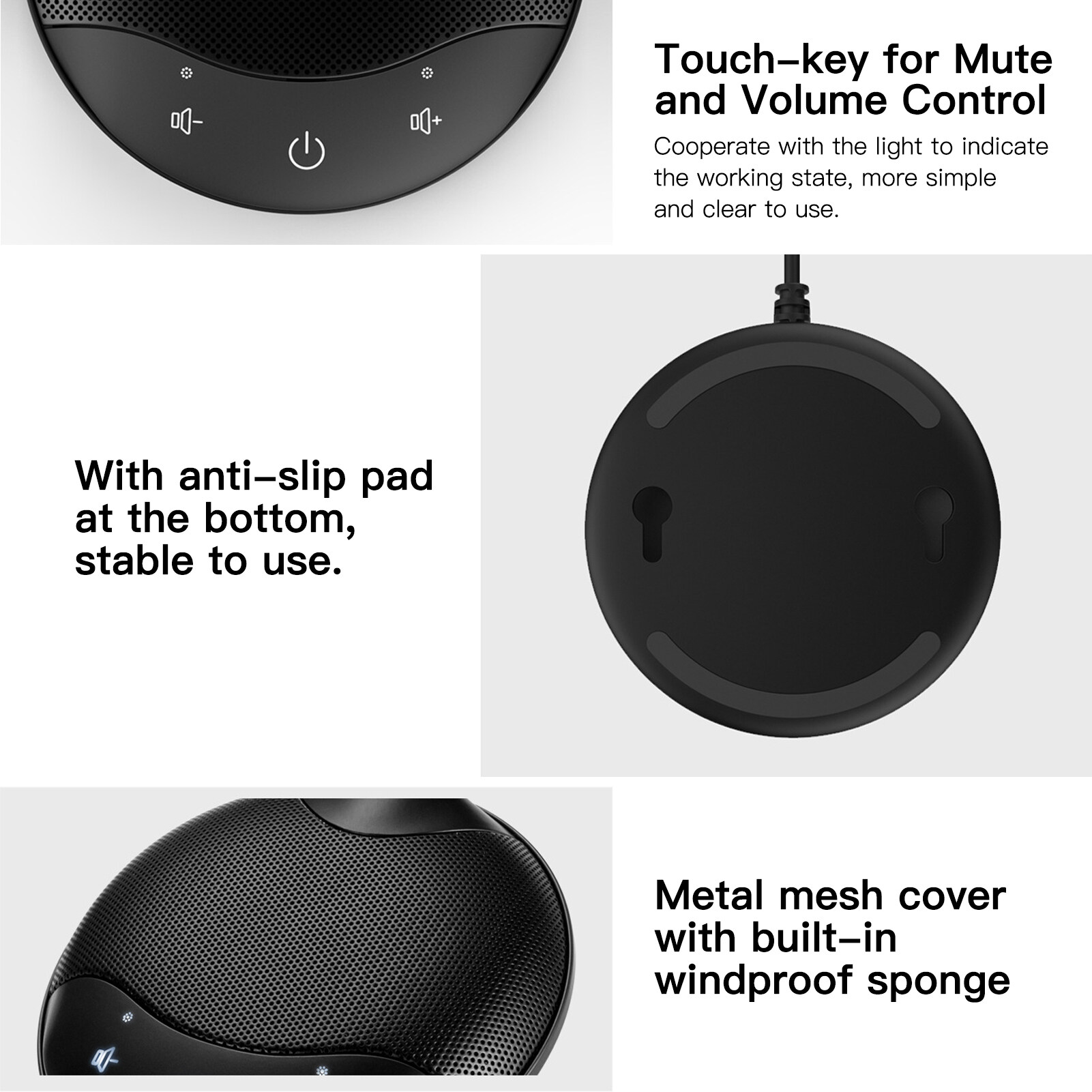 【360° Omnidirectional Mic】: Adopts 360° omnidirectional high sensitivity microphone, built-in noise cancellation audio chip, effective pickup within 3 meters radius. Clear sound quality, you don't need to speak close to the microphone, just put it on the desk.