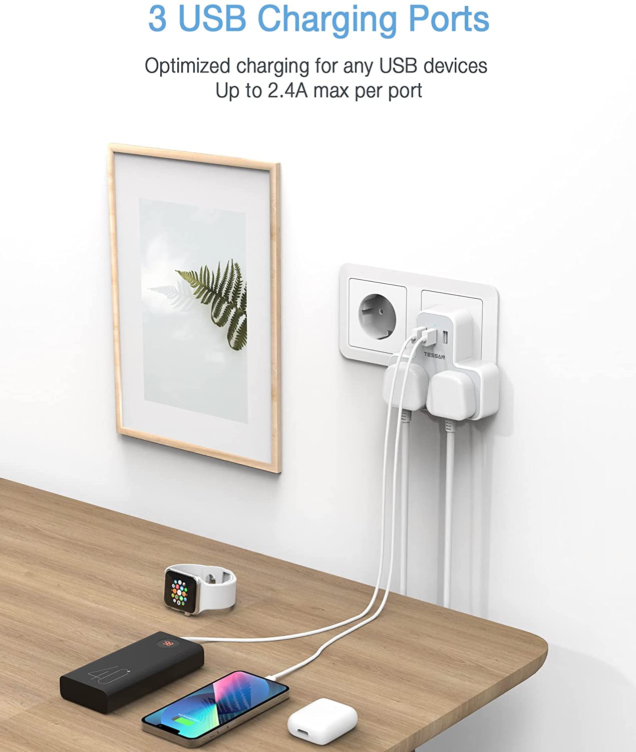 TESSAN 2 Way EU Adapter with 3 USB Ports