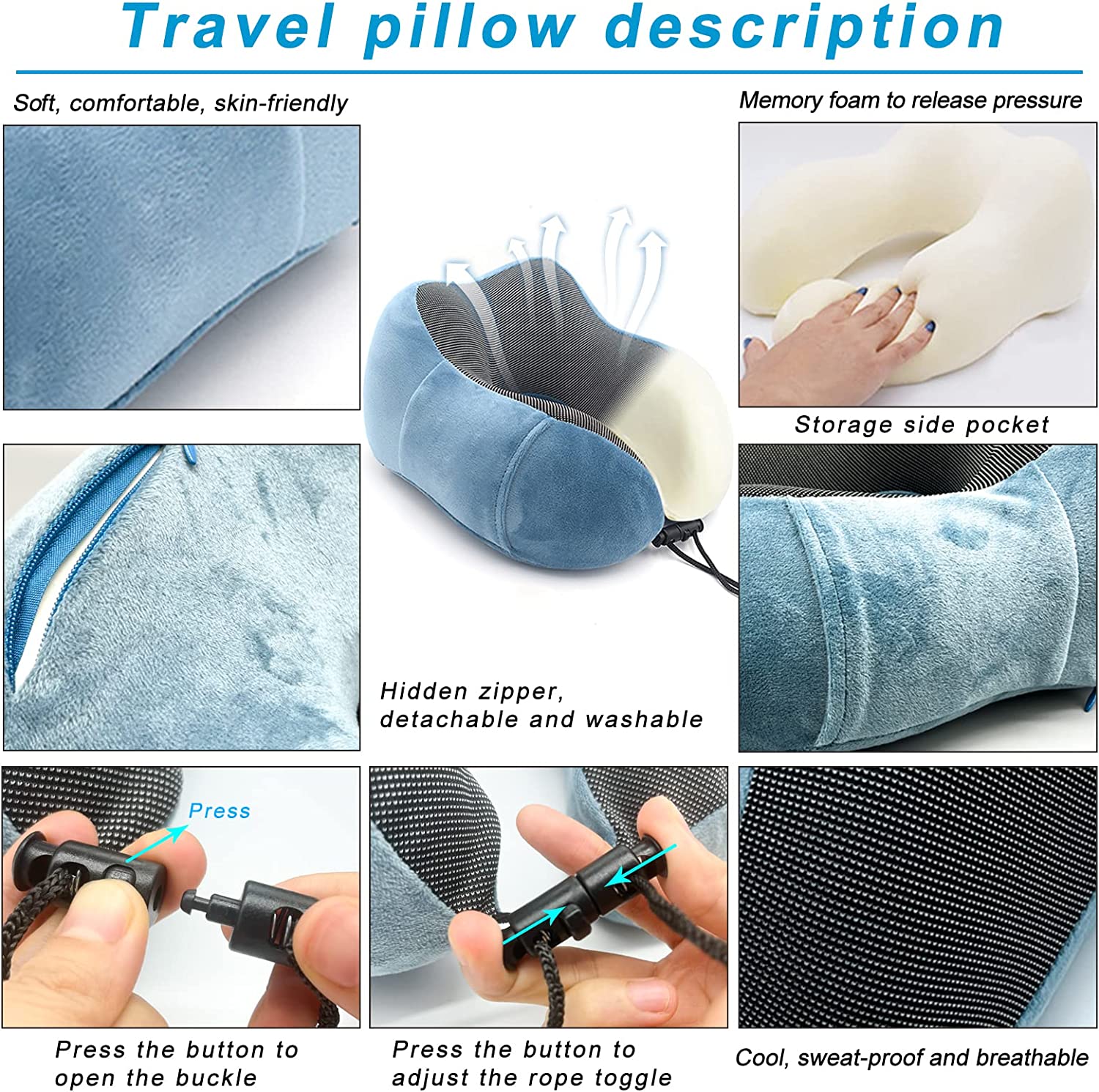 • The adjustable rope lock allows you to customize the angle of the pillow, give you neck support and comfort during the long flights or endless car rides