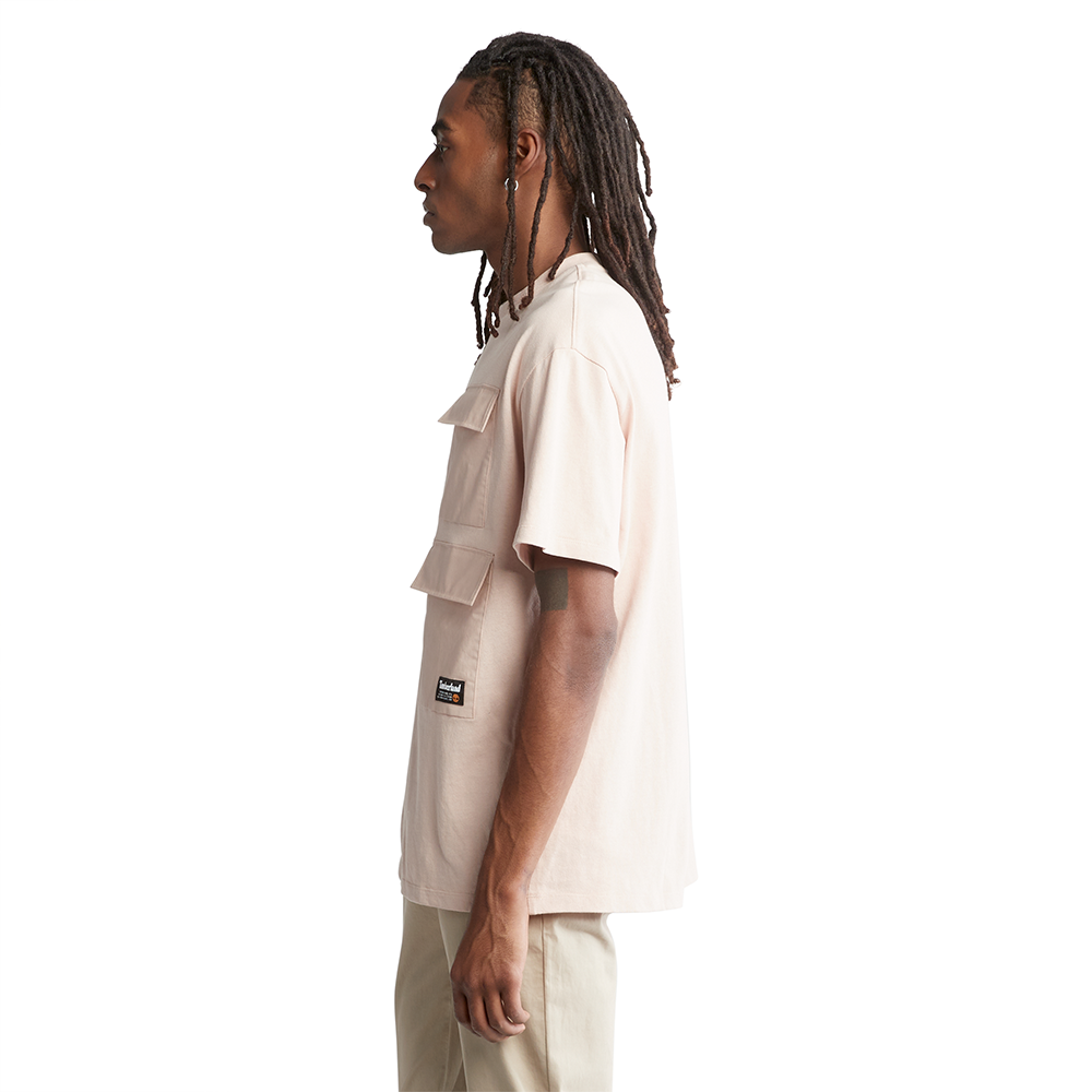 Worksite inspired design at the edge of utility. Great for those cooler summer days, this comfortable, relaxed-fit T-shirt has handy cargo pockets and is made with heavyweight cotton fabric that's been organically grown.