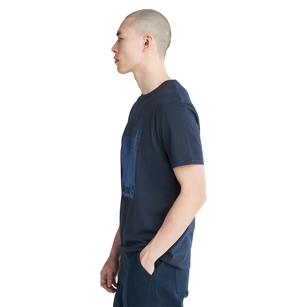 A striking photographic on the front of this men's classic tee makes a bold statement. So does our fabric: it's 100% cotton that's been organically grown.