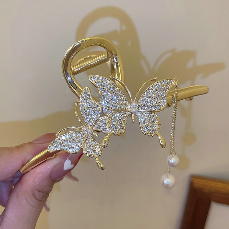 Features:New Fashion Lady Cute Super Immortal Versatile Temperament Tassel Hairpin Size:11cm Color:Gold full diamond Double Butterfly Pearl tassel clip Silver full diamond Double Butterfly Pearl tassel clip Material:Zinc + alloy Package Includes:a pc Hairpin Size: please allow 1-2cm differs due to manual measurement, thanks. Note: Due to the difference between different monitors, the picture may not reflect the actual color of the item. We guarantee the style is the same as shown in the pictures, but not the same performance on different bodies as on the model. Thank you!