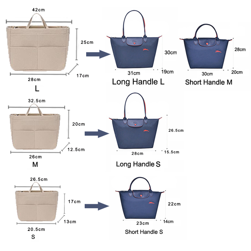 Name: Felt insert bag for LONGCHAMPColor: Beige, Pink, Deep Grey, Navy BlueFeatures: Soft, Encrypted Felt, Wear ResistantUses: storage, protect the inside of the bag, support the three-dimensionalApplies to: LONGCHAMP