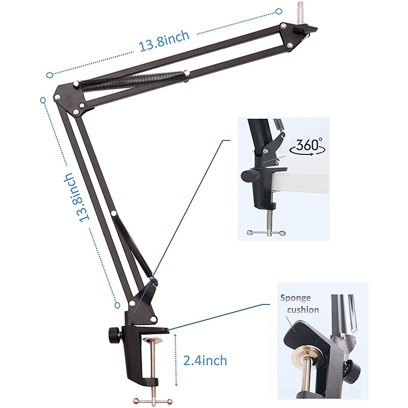 Professional Adjustable Microphone Stand:Professional Recording Studio Equipment with adjustable microphone stand, Adjustable Shock Mount, double layer Filter , Screw adapter, microphone shock mount, Table mounting clamp with sponge pad,boom arm,mic arm.