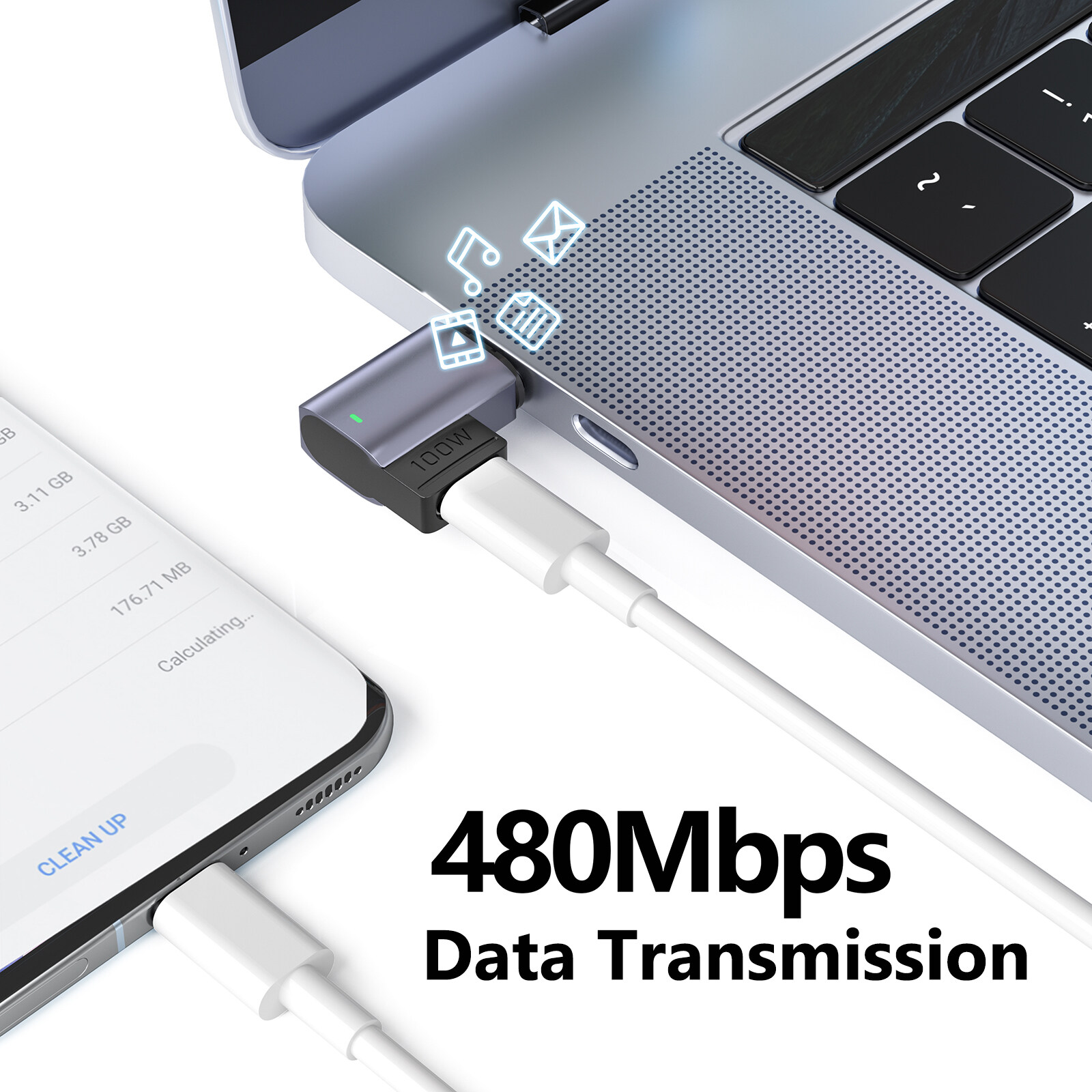 Product performance: support 100W high-power fast charging, USB2.0 data transmission