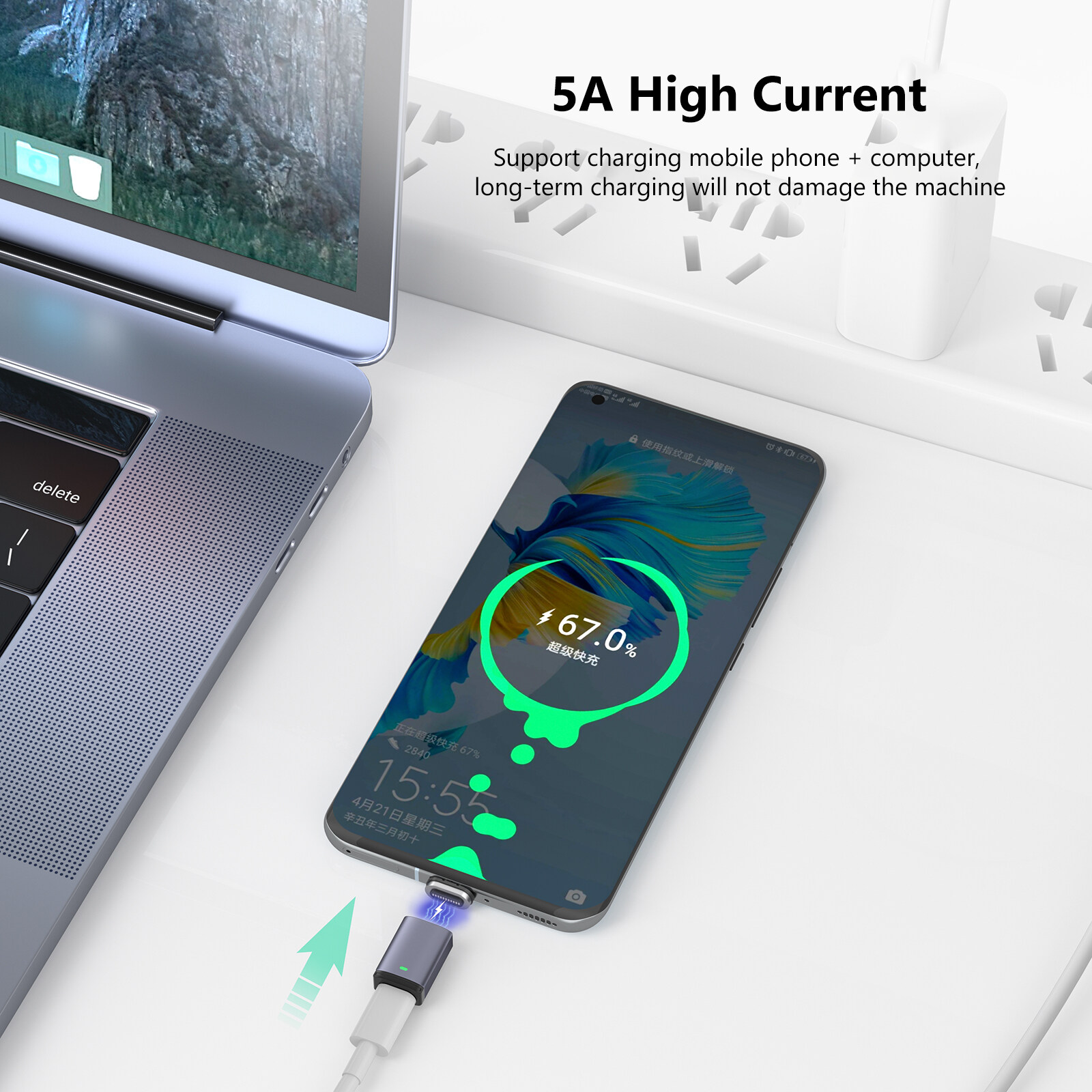 3. 5A High Current: Support charging mobile phone + computer, long-term charging will not damage the machine.