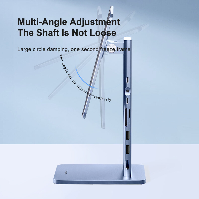 2-in-1 Stand & Hub: Hagibis innovative technology combines iPad stand and docking station make it more convenient. You can not only have a magnetic stand but also have a USB-C docking station with 4K@60Hz HDMI, 60W PD, USB 3.0, AUX and SD/Micro SD Card Reader.