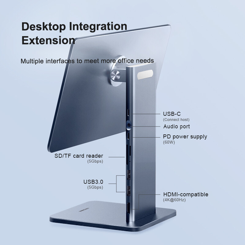 2-in-1 Stand & Hub: Hagibis innovative technology combines iPad stand and docking station make it more convenient. You can not only have a magnetic stand but also have a USB-C docking station with 4K@60Hz HDMI, 60W PD, USB 3.0, AUX and SD/Micro SD Card Reader.