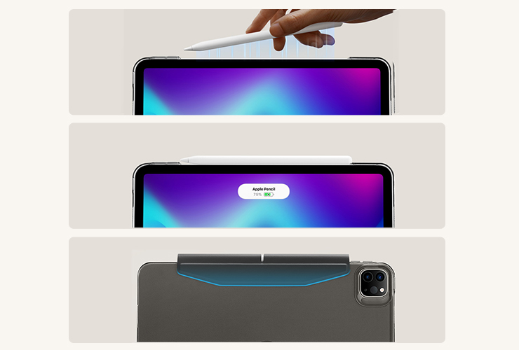 Precise cutout around Pencil charging area ensures that you can magnetically pair and wirelessly charge your Pencil 2 with your case on while magnetic clasp ensures that it stays secure and safe from scratches.