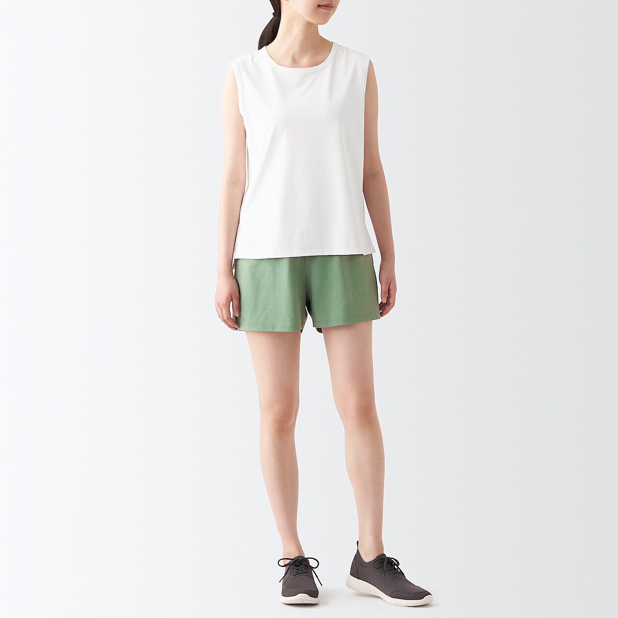 Moderately stretchy. Soft texture. Good for daily wear.