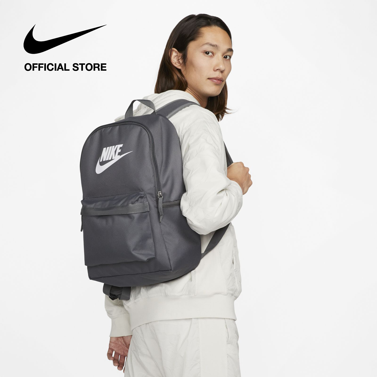 Take your gear to go with the Nike Heritage Backpack. Its spacious main compartment features a sleeve that holds up to a 15" laptop, so your computer is never out of reach. 2 zippered accessories pockets help keep your gear organized and easy to grab. This product is made with at least 65% recycled polyester fibers.