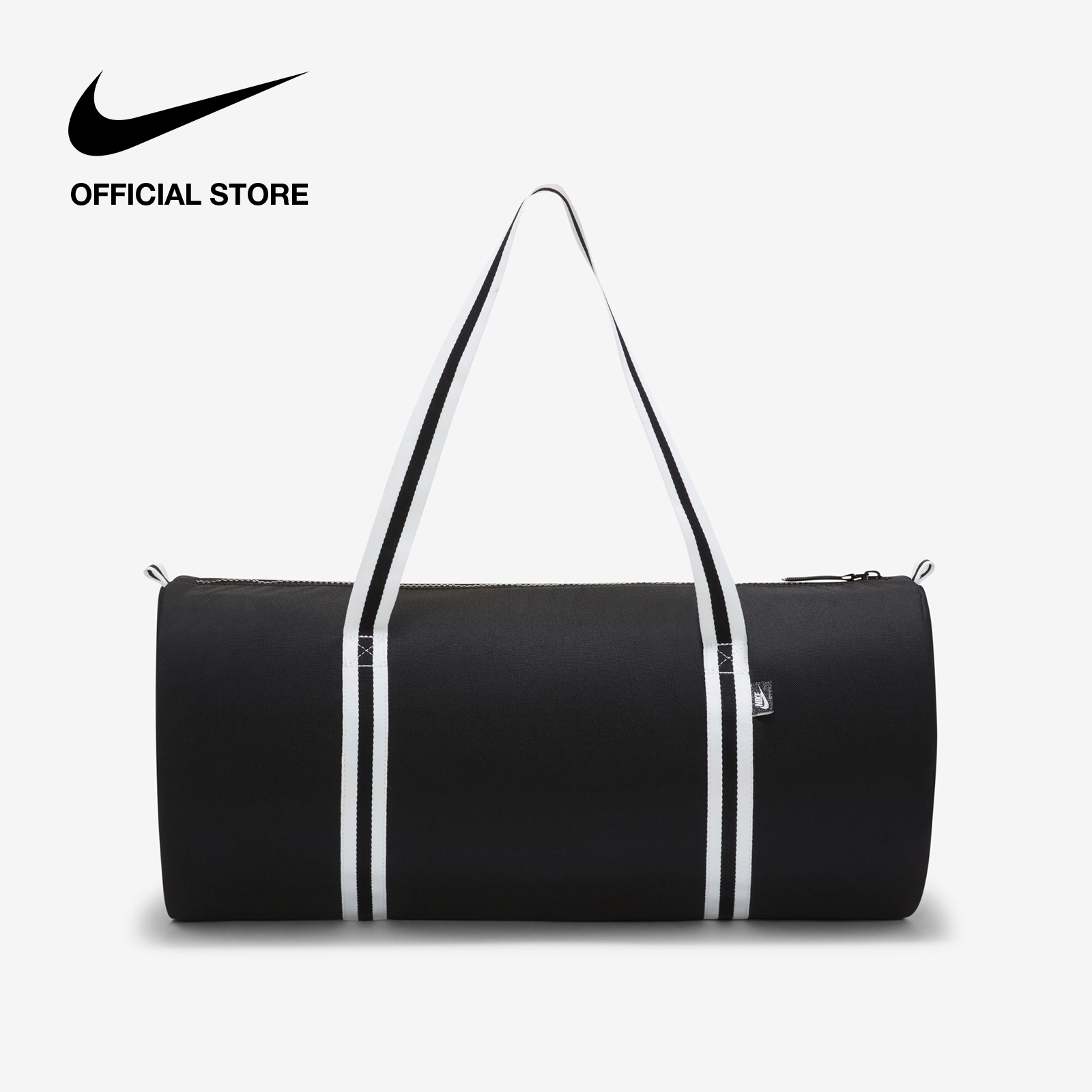 A tried-and-true travel companion, the Nike Heritage Duffel Bag offers extra storage when you need it. Its minimalist design is accented with striped woven details for a throwback look. An accessories pocket on the front panel provides secure small-item storage. This product is made with at least 65% recycled polyester.