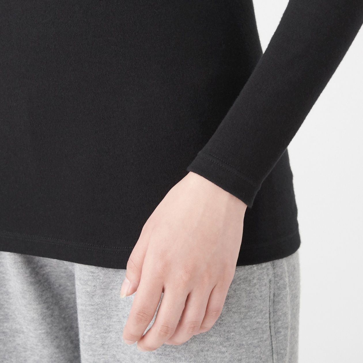 MUJI Ladies Cotton Wool Smooth High Neck Long Sleeve T-Shirts