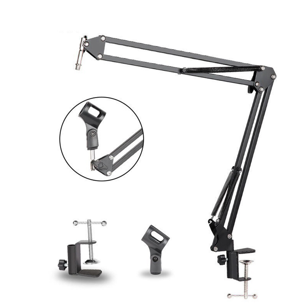 Foldable Cantilever Scissor Arm Bracket: The adjustable arm can be folded up and easy for you to carry around. This feature enables to adjust the suitable angle and height to show your perfect voice. Before adjusting the angle of the stand make sure to loosen the knob first. Avoid rotating it by force as it can damage the screw threads.