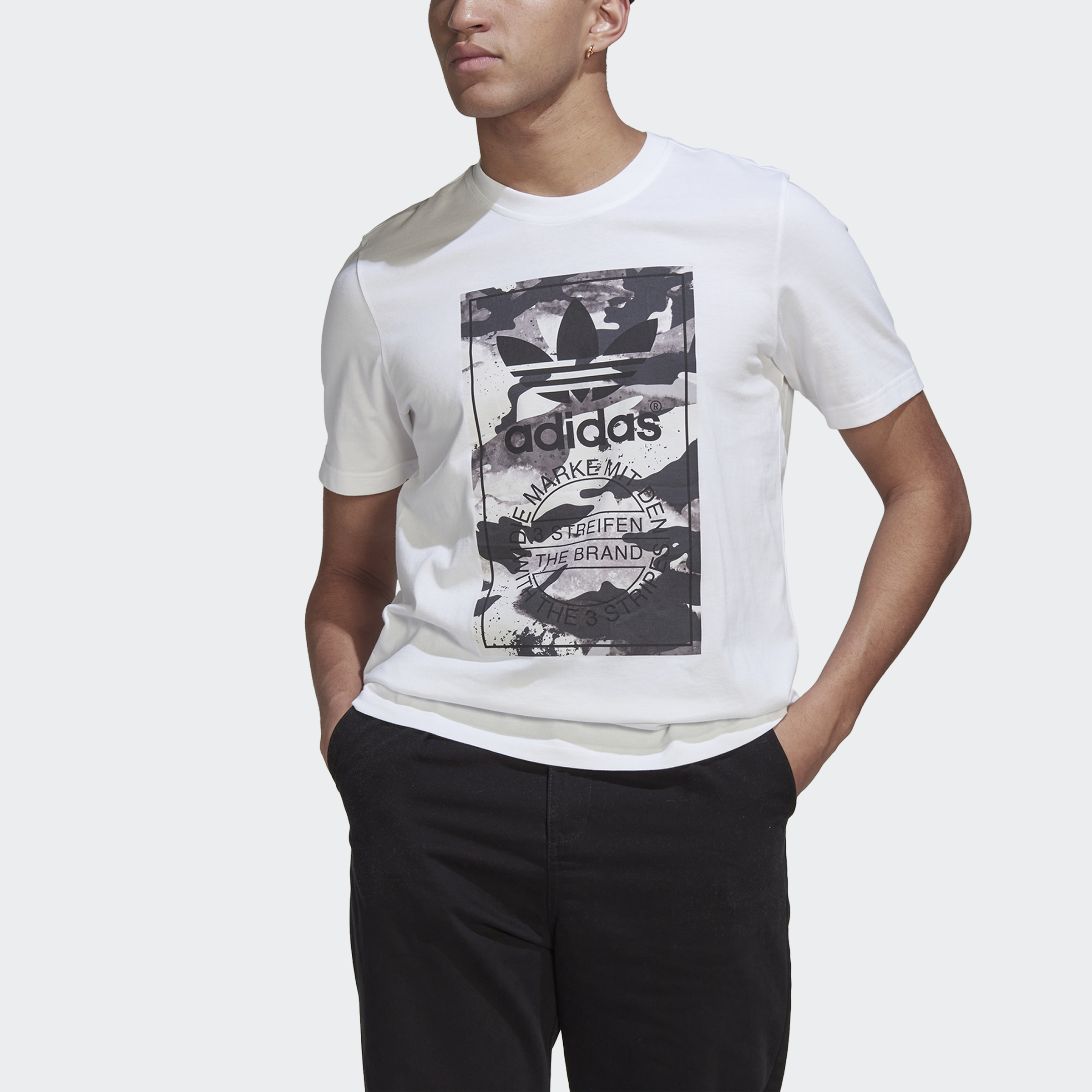 Classic camo gets a fresh update with this adidas Graphics Camo Tee. The iconic Trefoil logo on the front has a colourful camo fill around it, and the soft cotton makes it ready for everyday comfort. Our cotton products support more sustainable cotton farming.