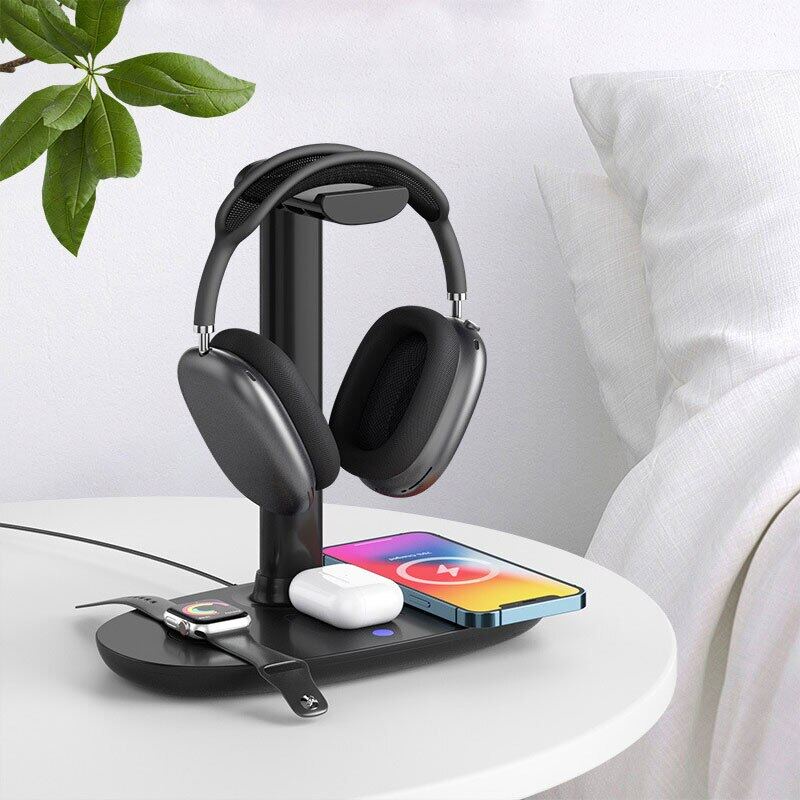 - 4 IN 1 15W Fast Charging Dock and Headphone Rack, Space up your desk space and improve your desk tidiness.