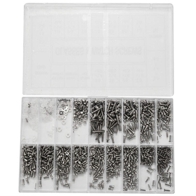 EYE GLASSES SCREW KIT:The glasses repair kit with screws contains 18 sizes eyeglass screws nuts washers screw caps. It is a great selection to replace screws for most eyeglasses and sunglasses