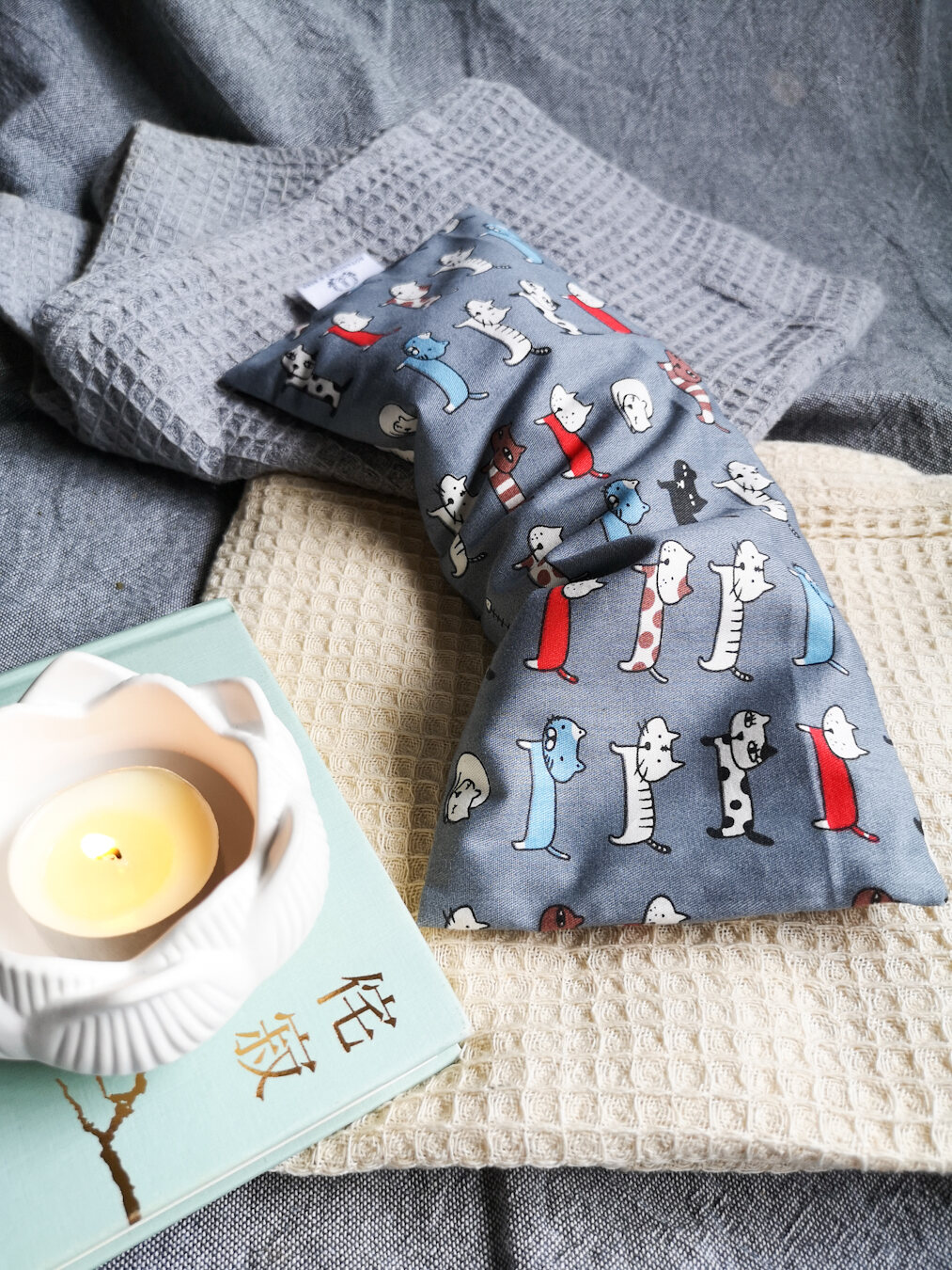 Made with 100% cotton fabric and filled with flaxseeds, lavender, essential oils. For hygiene reasons, the inner pillow is pre-washed prior to filling up the contents. Do not wash the inner pillow. Outer pillow case is removable and washable. Size is approximately 29cm long x 11cm wide.
