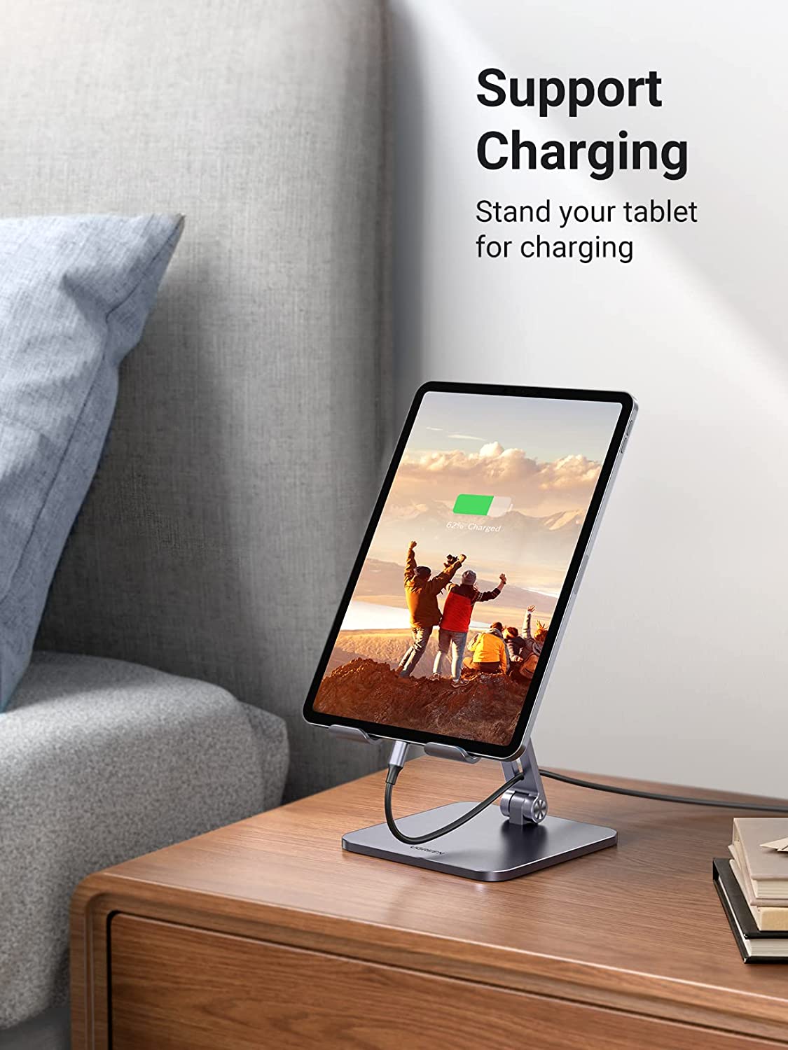 - Heavy Duty Ipad Holder: Made of full aluminum alloy material, along with a thicker, bigger base and a center of gravity design, this ipad stand for desk adjustable aims to achieve superior stability and durability. Compared with the ordinary tablet stand for desk using plastic, the weight is increased by up to 50% (14 ounces) and larger (4.72*6.7 inches), and it provides 10 times stable support without shaking, which is very suitable for large-sized tablets, such as iPad Pro 12.9 Stand.