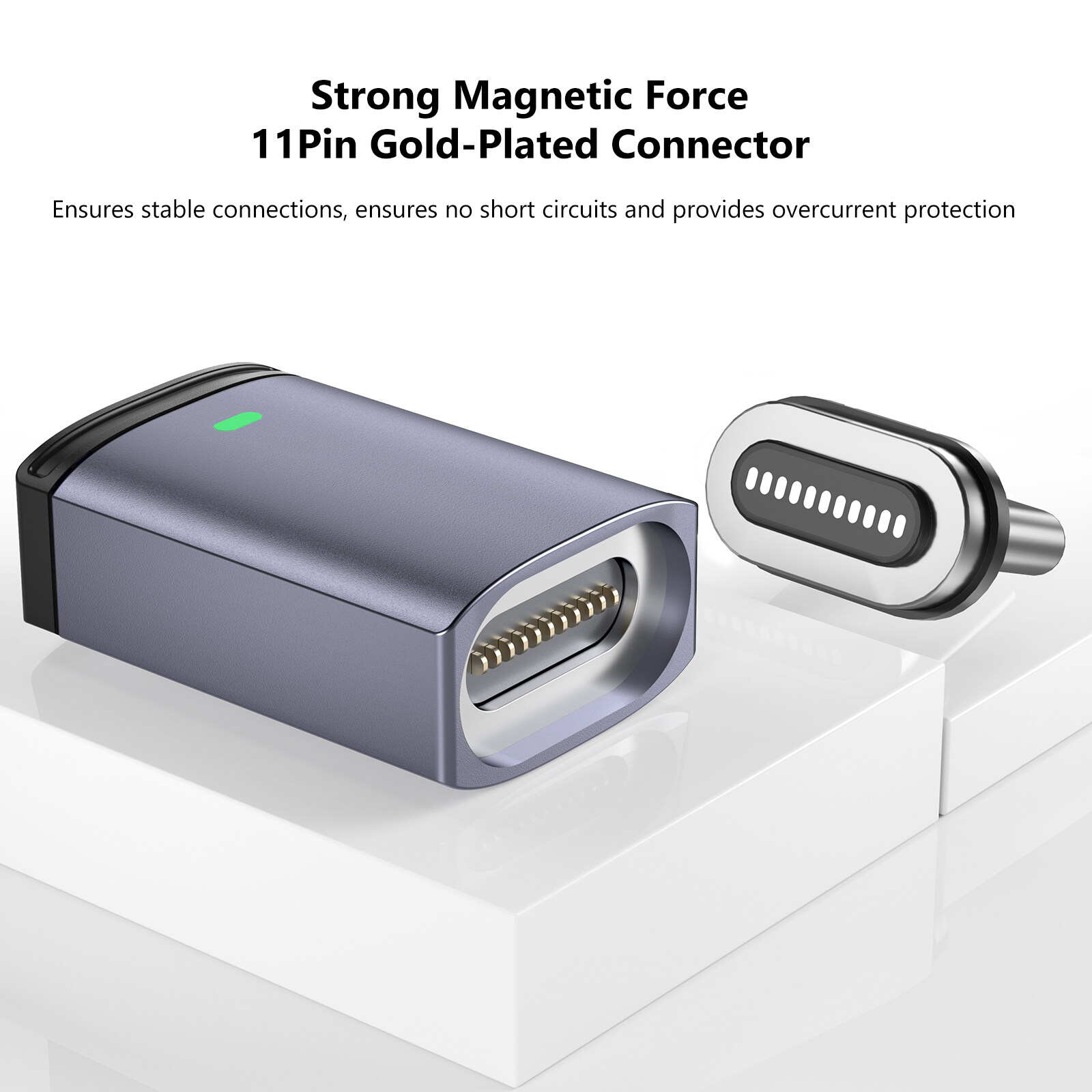 Feature: 1. Strong Magnetic Force:11Pin gold-plated interface to ensure stable connection, ensure no short circuit and provide overcurrent protection to avoid accidental pulling, which will cause the device to fall naturally and damage the charging port when pulled by external force.