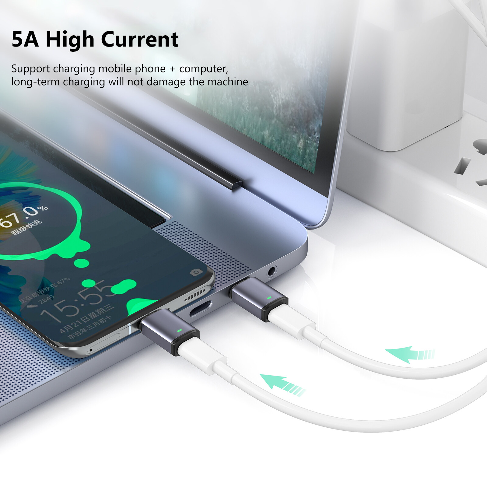 3. 5A High Current: Support charging mobile phone + computer, long-term charging will not damage the machine.