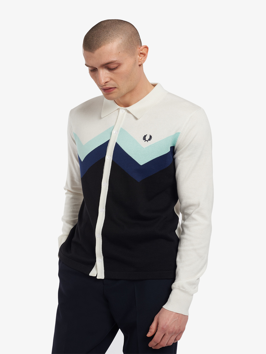 A button-through shirt knitted in a blend of cotton and acrylic. Made in Italy in a slim fit, with a bold chevron design.
