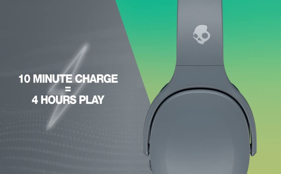 FEATURES Adjustable Sensory Bass Personal Sound by Audiodo™ Wireless via Bluetooth® 5 Up to 40 Hours of Battery Rapid Charge: 10 Minutes = 4 Hours Call, Track and Volume Control Activate Assistant Built-in Tile™ Finding Technology Flat-folding and Collapsible Compatible with Skullcandy App Travel Bag Back-Up AUX Cable USB-C Charging Cable