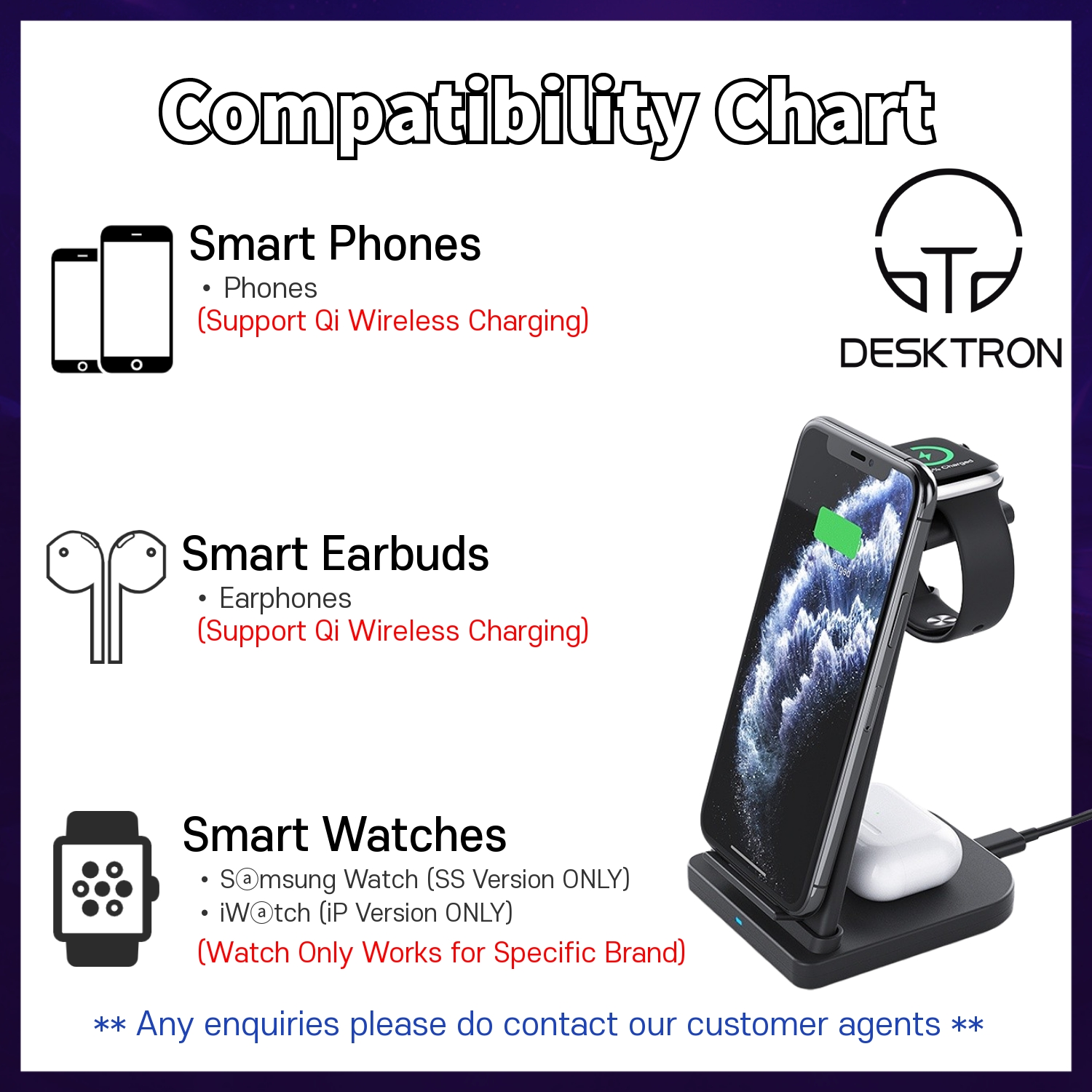 - iPhone Version (iWatch/Airpod/iPhone and Qi-Enabled Wireless Smart Phones. )