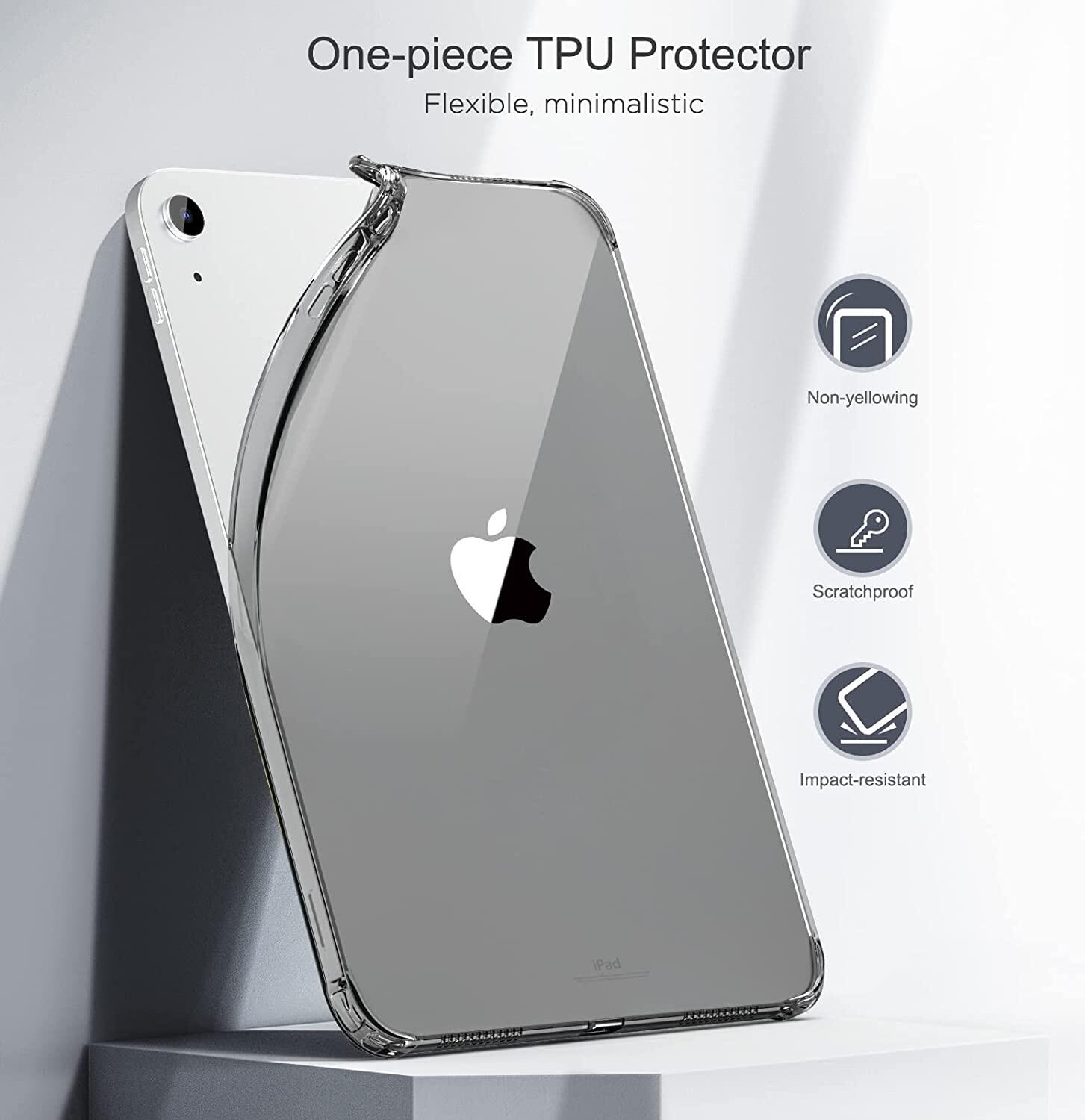 Soft flexible TPU bumper edges and reinforced air-cushion corners offer extra protection against bumps and drops to new iPad 2022. Transparent and waterproof design guards the iPad (10th generation, 2022) tablet perfectly with an original look. Precise cutouts for easy access to all ports, buttons and speaker. With slim and simple protective case, you can super easily install or remove the case. No bezels around the screen allows unobstructed gesture swipes, easy to clean during daily use.