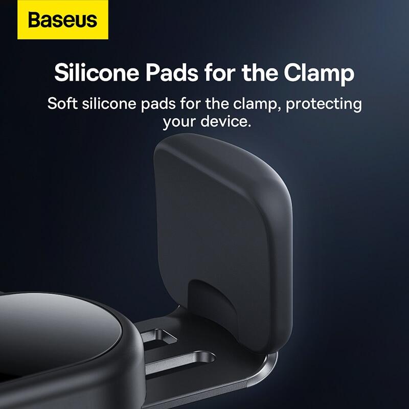 Skid-proof and impact-resisting silicone pads on the clamp to protect your device