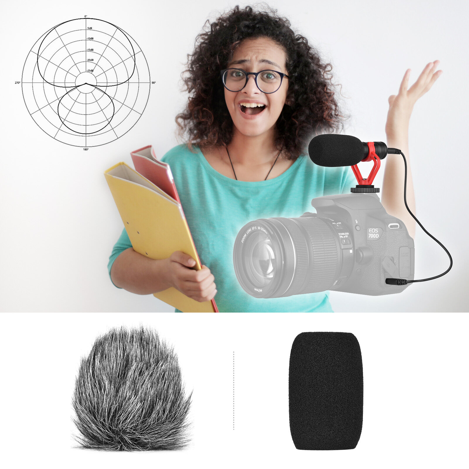Anti-Shock Mount: With a shock-resistant mount, mic can install on camera, plug and play, effectively reduce noise from unwanted vibration.