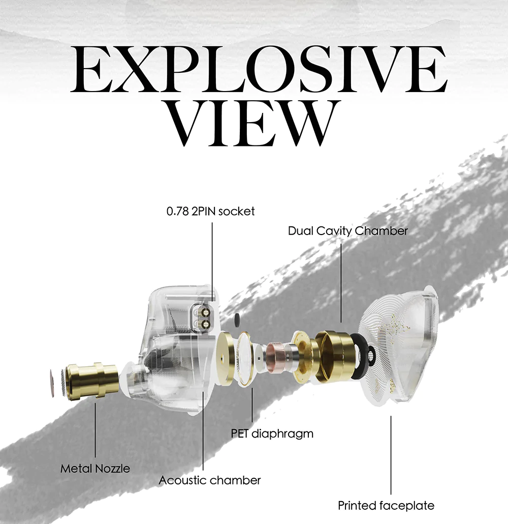This earphone is a new attempt of the brand to pursuing an overall musical but balanced sound with more thick and spacious sound signature. Theoretically, this set of PET diaphragm driver IEM has a much lower distortion rate .