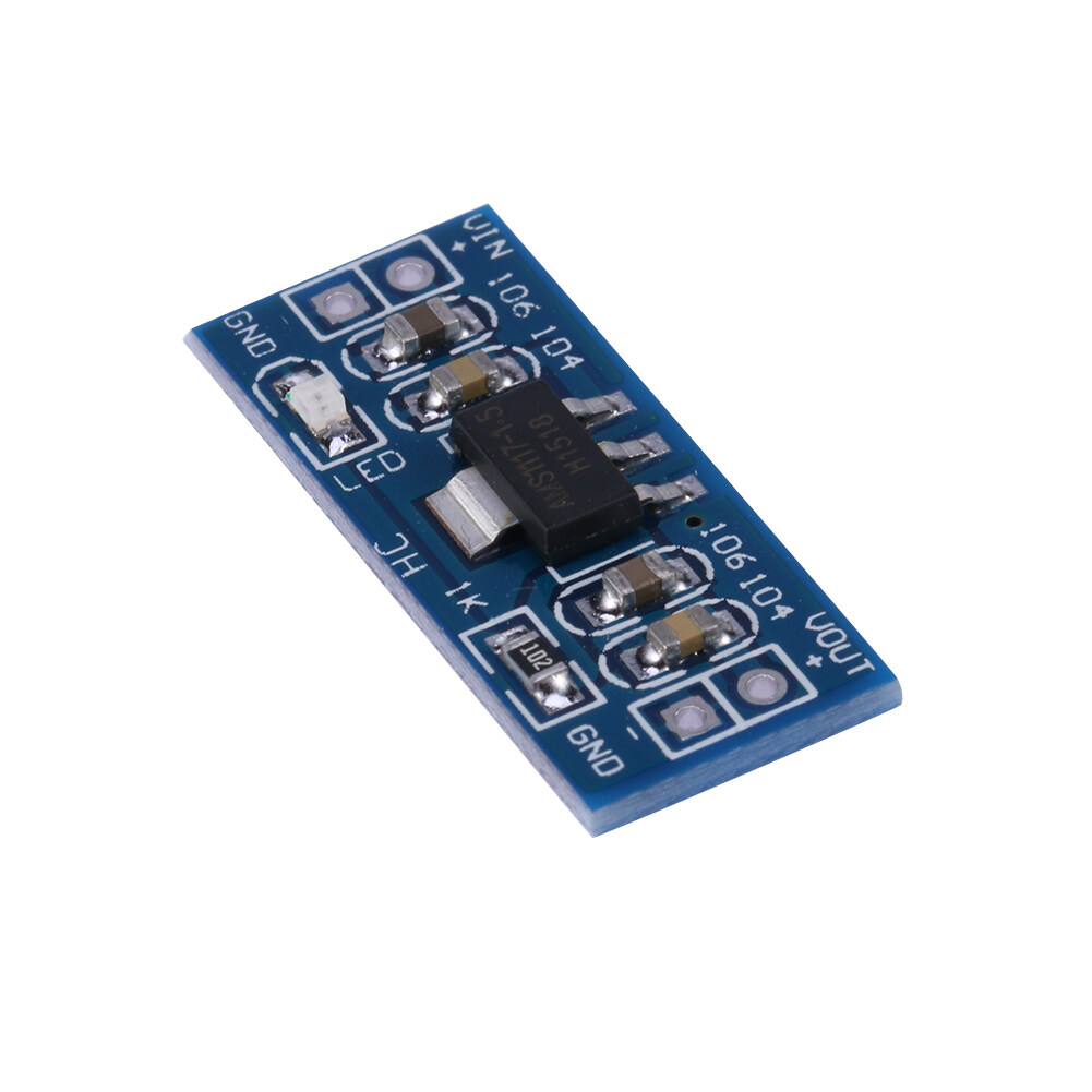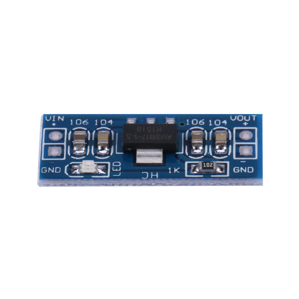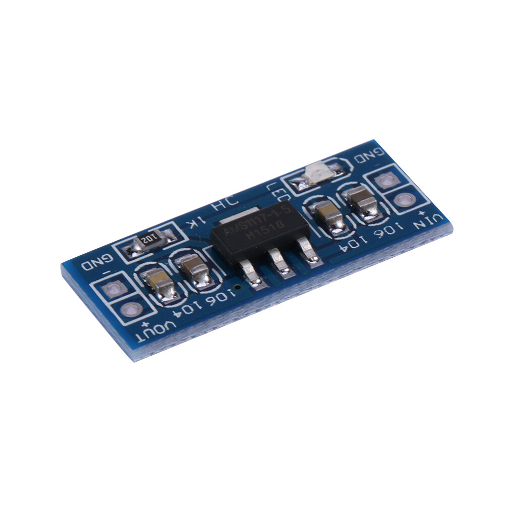 AMS1117 1.5V 800mA Output DC 4.75-12V Input Double Panel Step Down Power Supply Module Features: 1. It is suitable for electronic equipment that requires 1.5V power supply for single-chip project design.