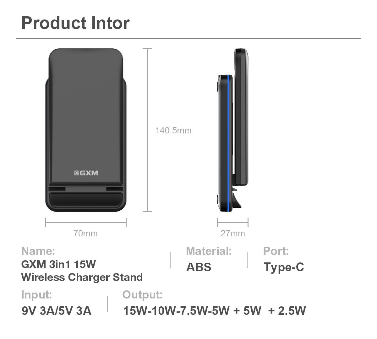 - Output Wireless Charging Stand : 5W / 7.5W / 10W / 15W (Max)