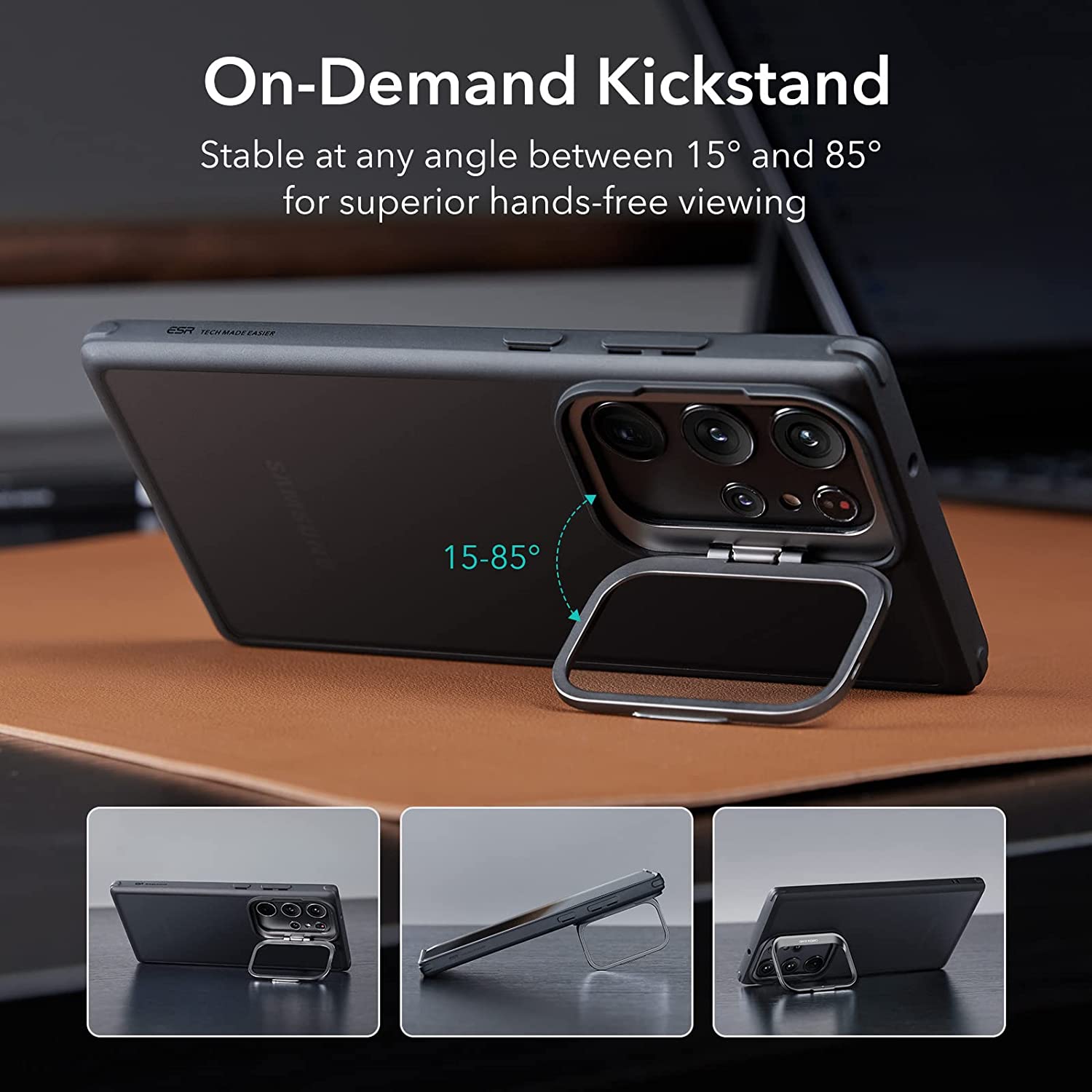 Adjustable Camera-Guard Kickstand: fully adjustable between 15° and 85° to ensure the perfect angle for catching up on your favorite shows