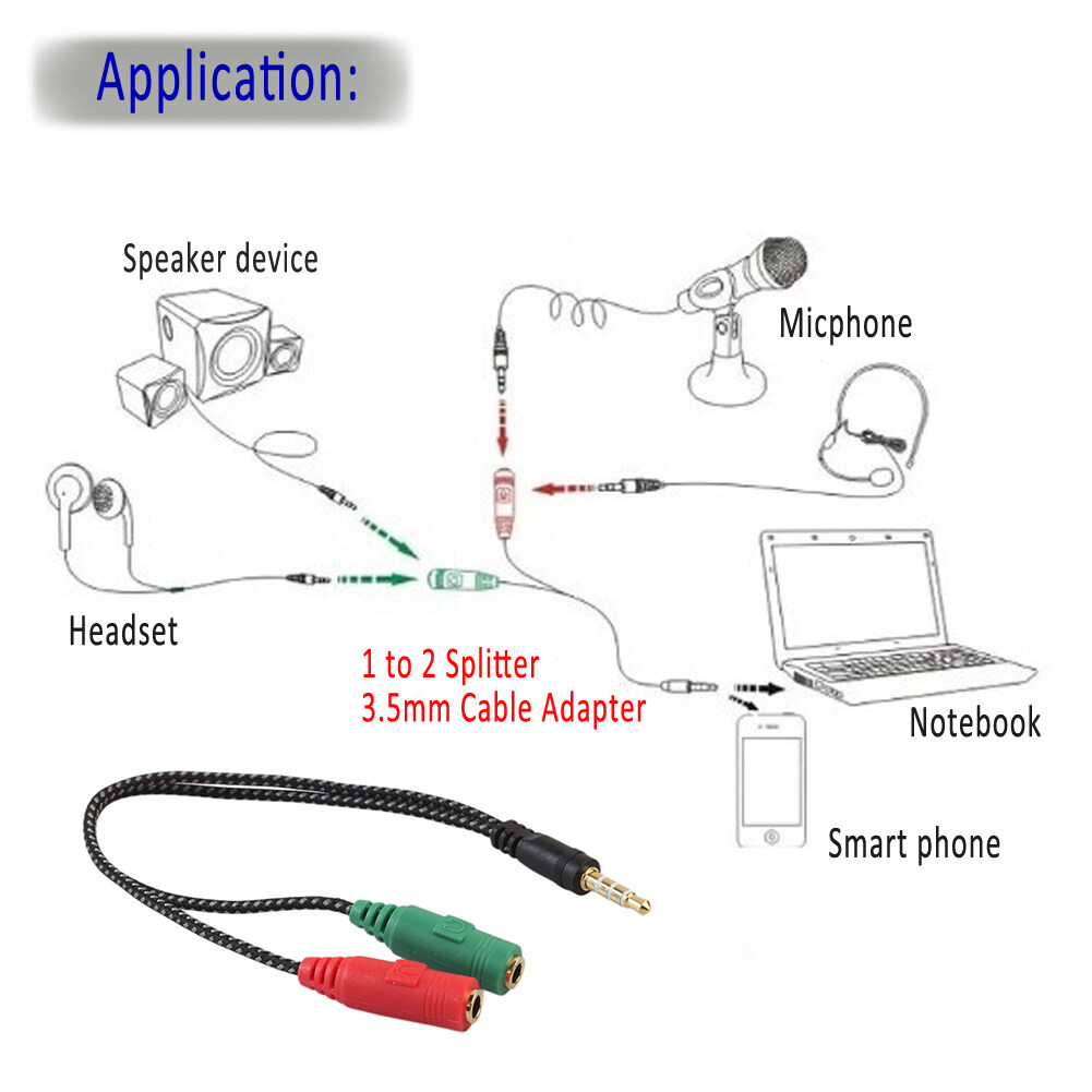 Background: Now the new notebooks / tablet PC among of them are only own one 3.5MM headset interface. However, many wired headphones are 2 interface(one is audio port, the other is Mic port), this adapter line can help you solve the problem and overcome the of some audio ports, by turning a single laptop limitation.