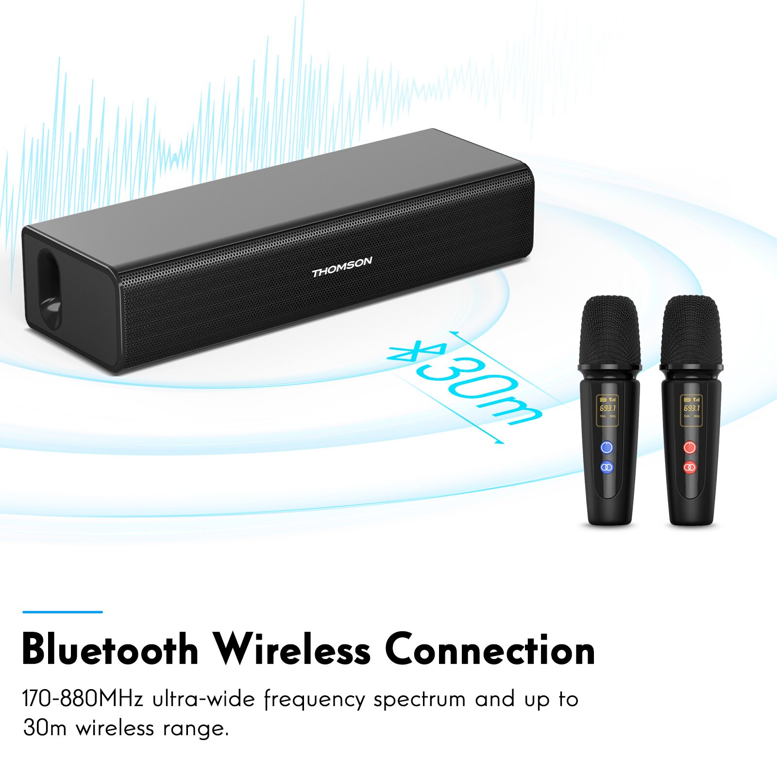 THOMSON Portable Speaker With Karaoke Microphone Bluetooth, Wireless Outdoor Audio,Remote Control with 2 Wireless Microphones for Party