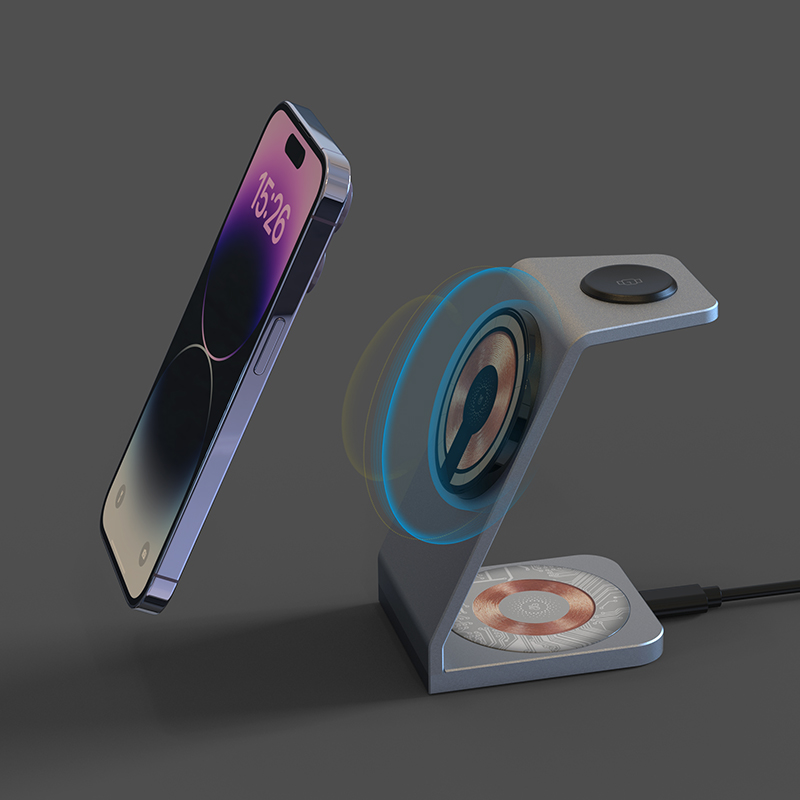 【3-in-1 Wireless Charging】 - 2023 Latest Design, features a magnetic aluminium wireless charger designed for Apple Users. To enjoy a 15W Charging experience please use a 20W QC Adaptor. (sold separately)