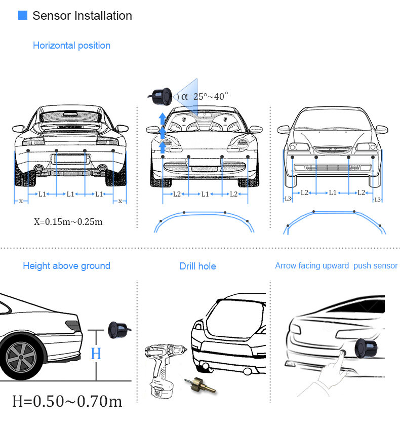 • 4/8 x Parking Sensors with 2.4 m Line