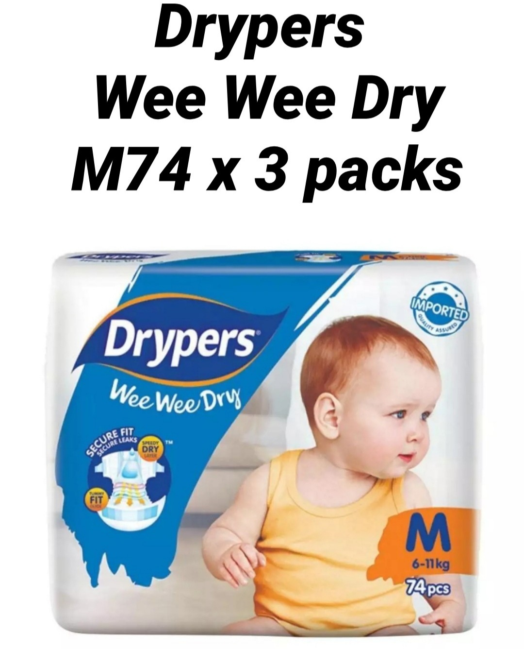 Drypers Wee Wee Dry M74 x 3 packs