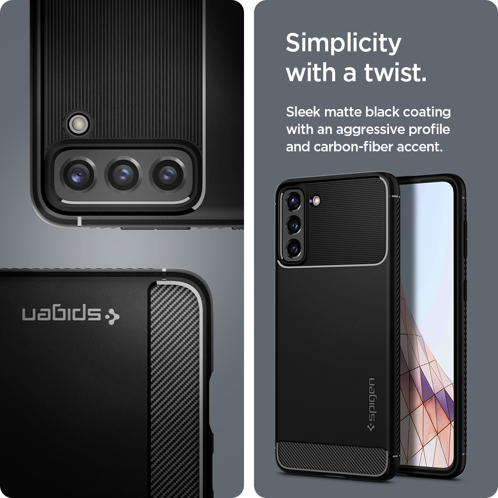 Inspired by car design, Rugged Armor® secures the device in a timeless and streamlined body. Its slim frame is textured with carbon fiber detailing and subtle glossy accents. Timeless design with amplified quality and overall protection.